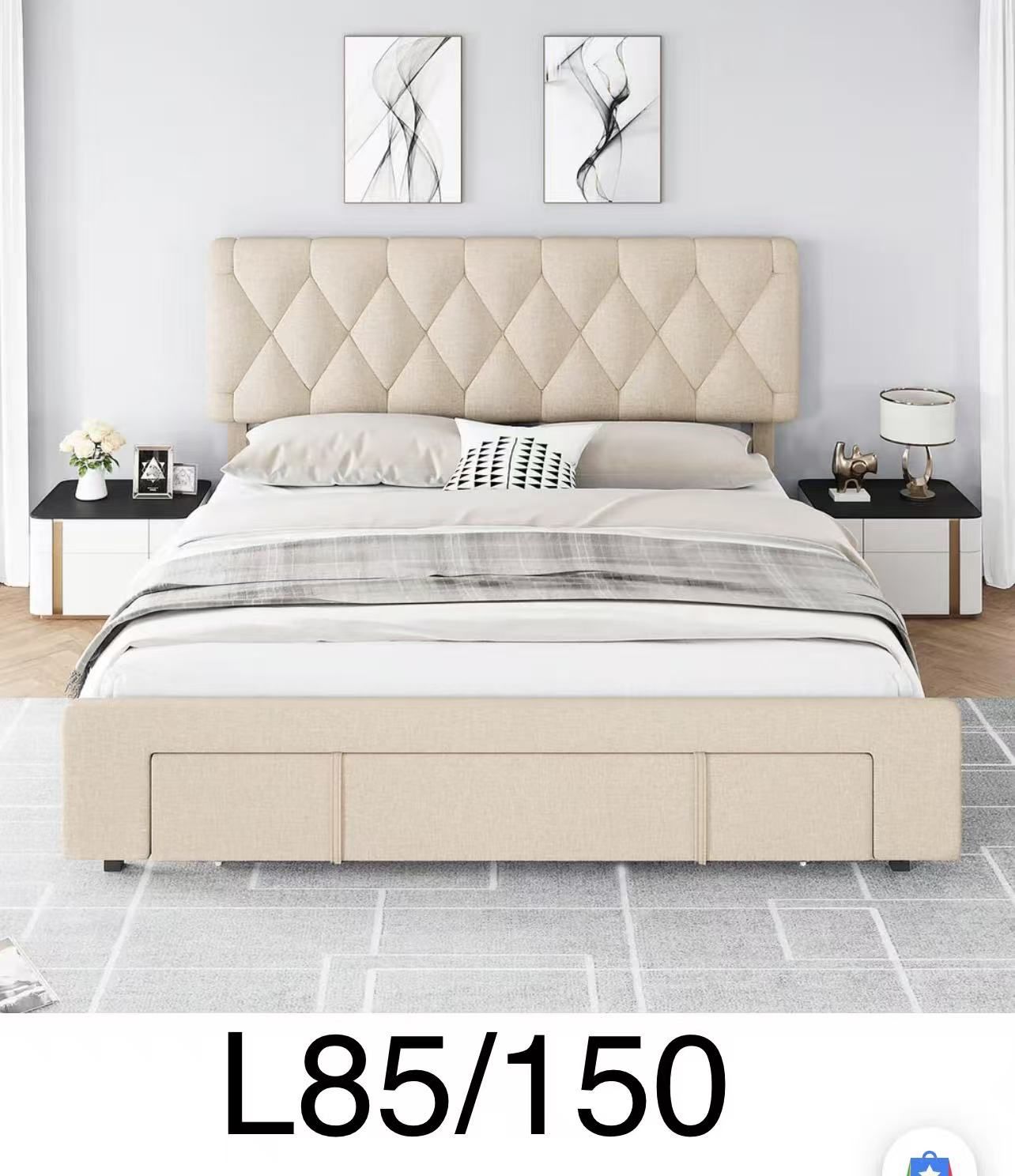 L85đŸ”¥Queen Size Bed Frame with Storage Drawers, Upholstered Platform Bed Frame with Adjustable Button Tufted Headboard, Mattress Foundation with Solid Wooden Slats Support, No Box Spring Needed$150