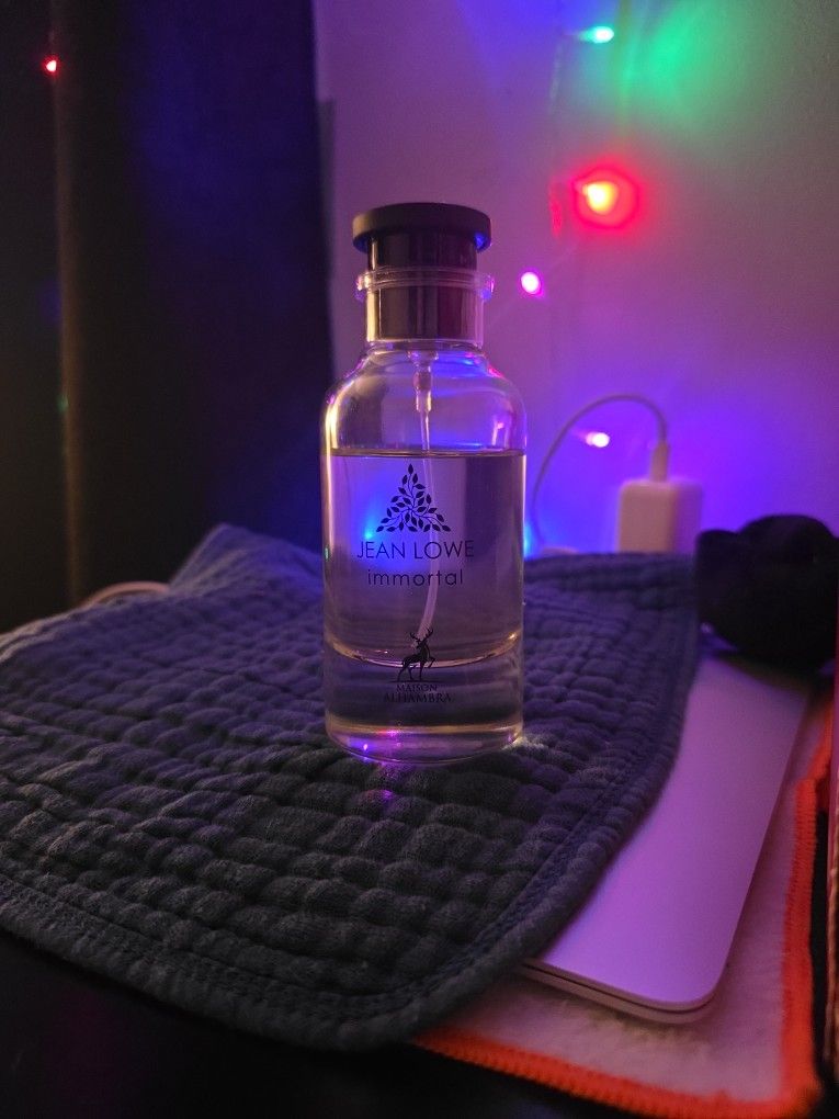 This is the original first run production of jean Lowe immortal before they changed the name to immortel. The stuff is always sold out and hard to find and has been since day one. It's literally Louis Vuitton lemmensite in a different bottle but with better performance and more sillage. This is another Middle East hype beast and for good reason. *Please note that this bottle is about 90% full because I decant. Like always if you're interested in decants just message me and let me know.