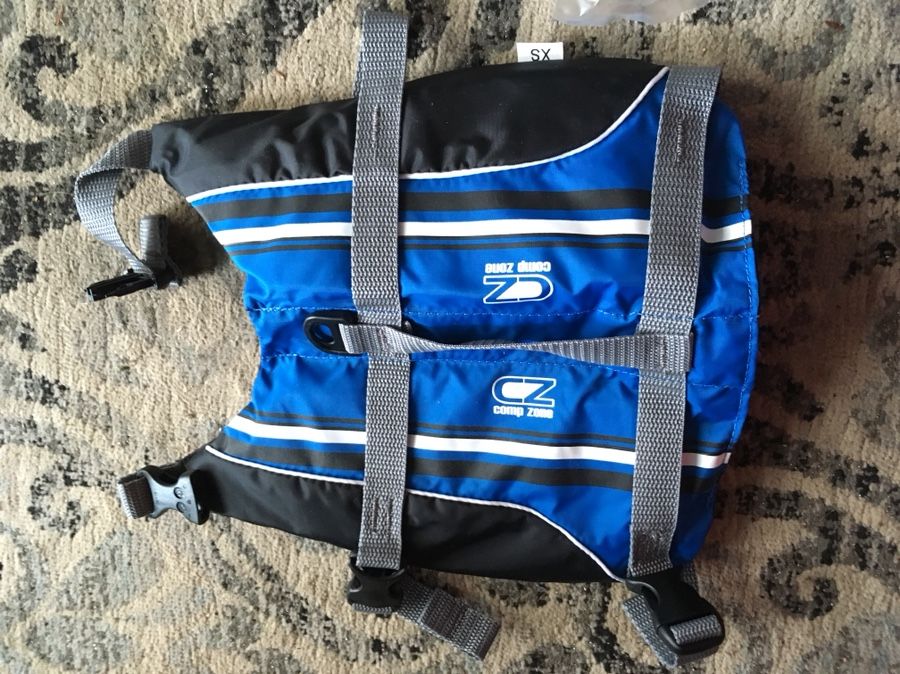 New Blue dog life preserver XS - fits 5-12lb dogs - includes leash clip and grab handle