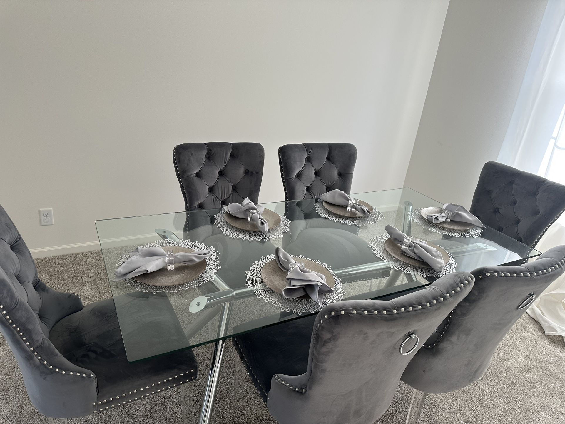 Glass table from West Elm. It’s tempered glass thick and in great condition. Used this table like three times total.