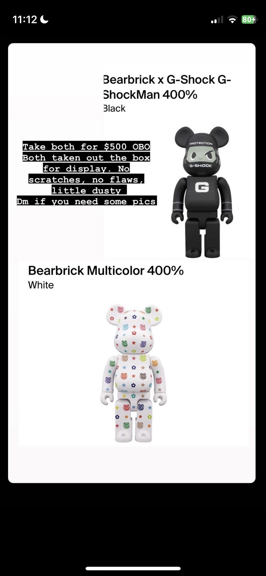 Bought both in Japan many years ago $500 obo for both Both 400% Both taken out the box for display so it’s a bit dusty but not flaws or scratches