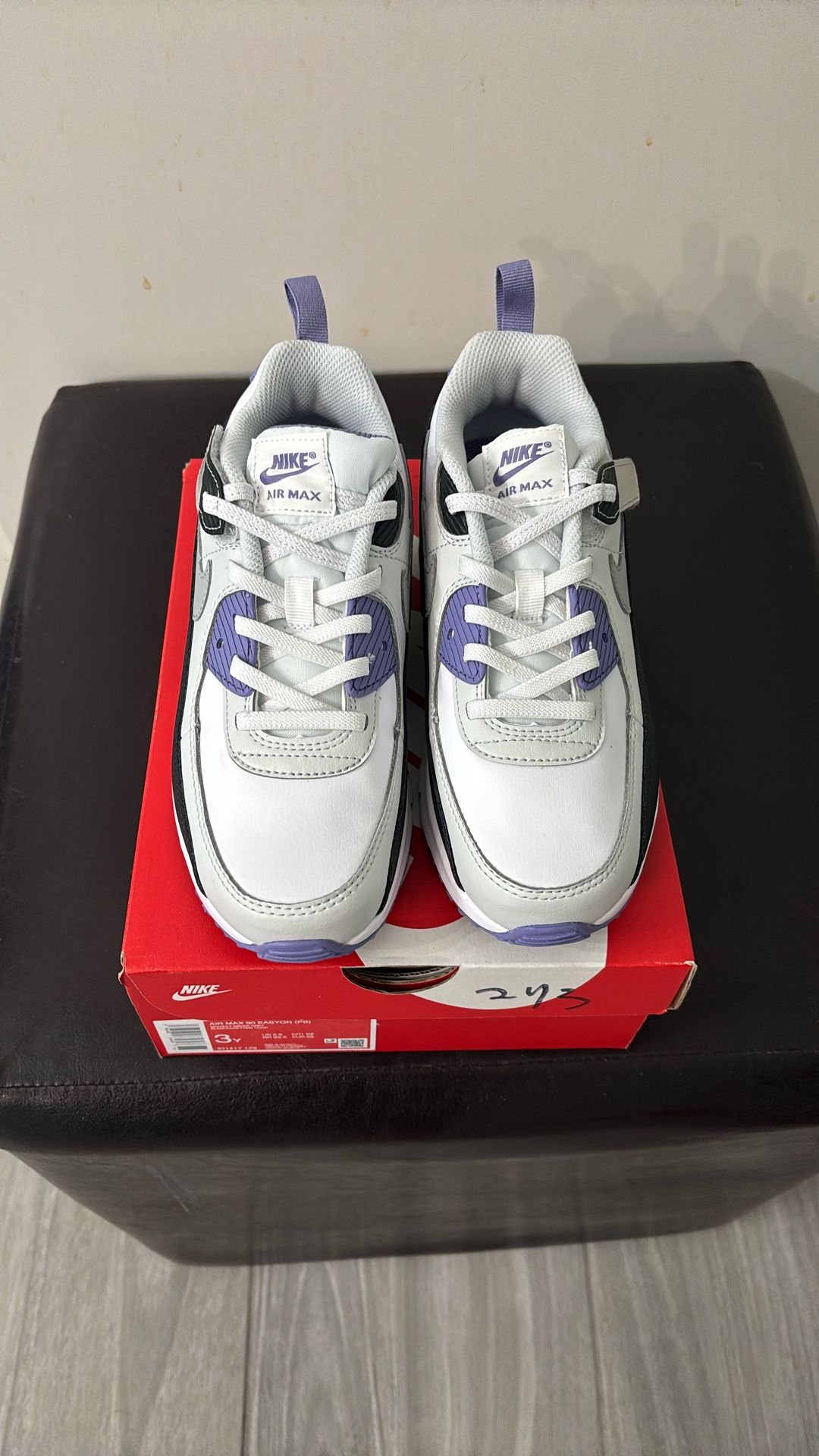 Nike Air Max 90 Easy on (PS) White/Lt smoke grey Youth size 3 New in box