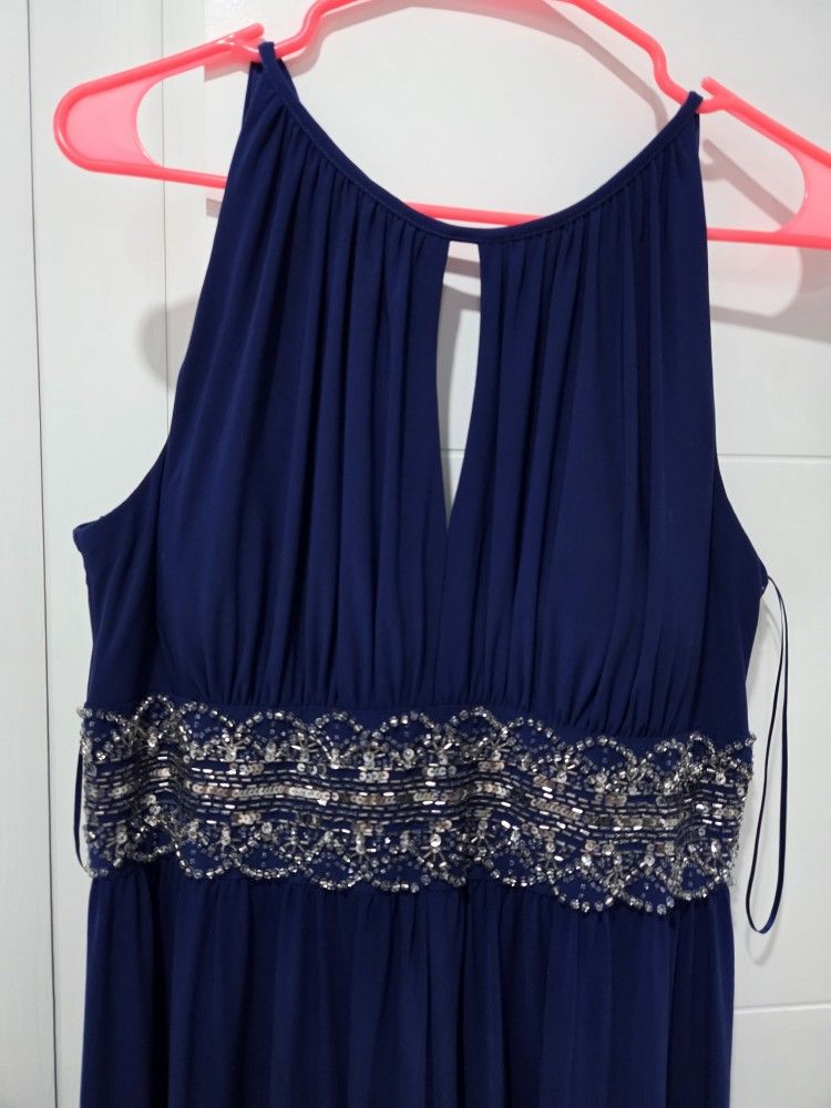 Long blue dress, worn only once for a baby shower. You can wear it if you're pregnant or for a party; the fabric is soft and comfortable.