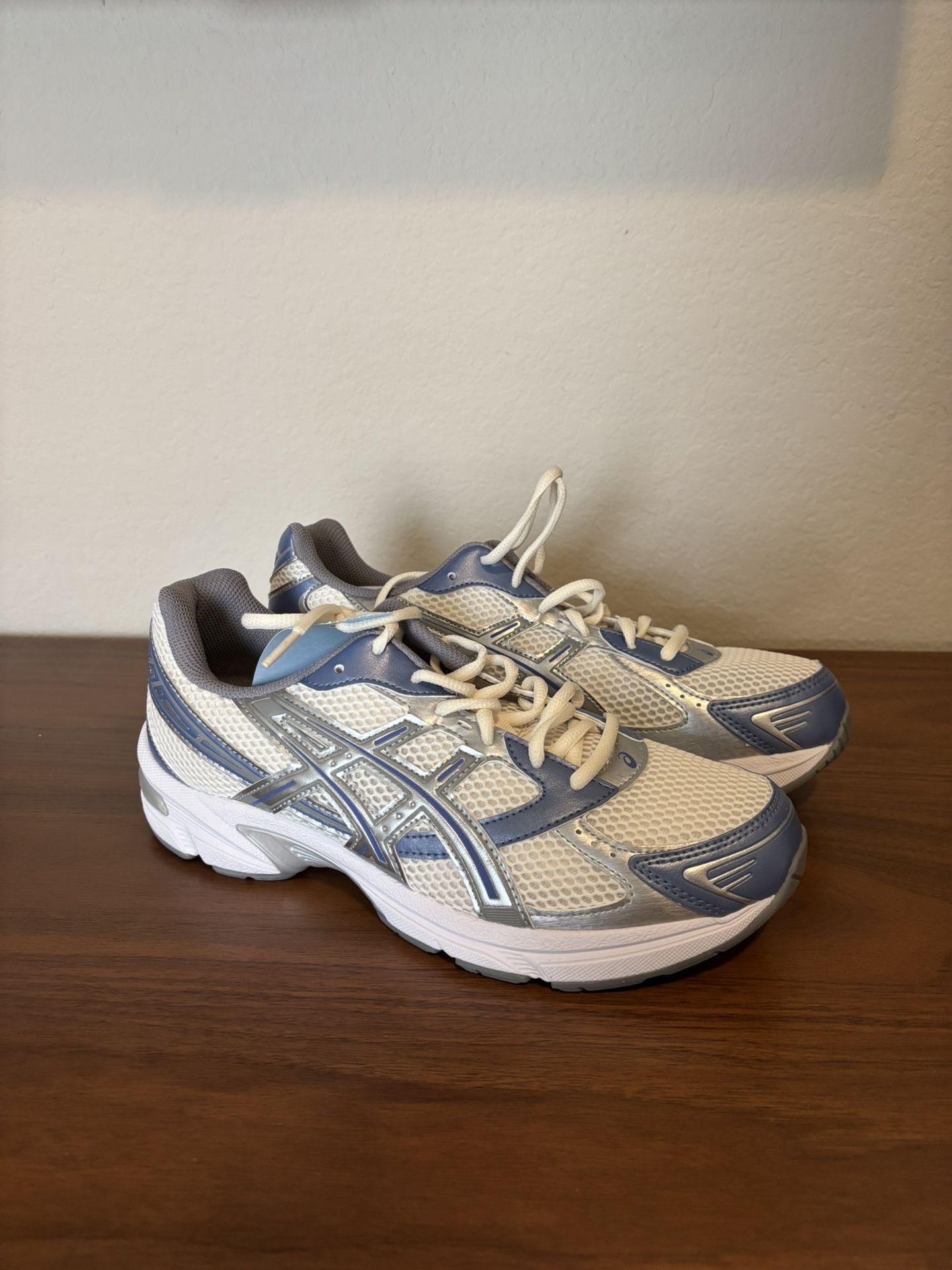 Classic ASICS side stripe pattern • Mesh upper with synthetic overlays • GEL cushioning running sole • This design closely matches the GEL-Contend 4 series used as a budget running shoe.
