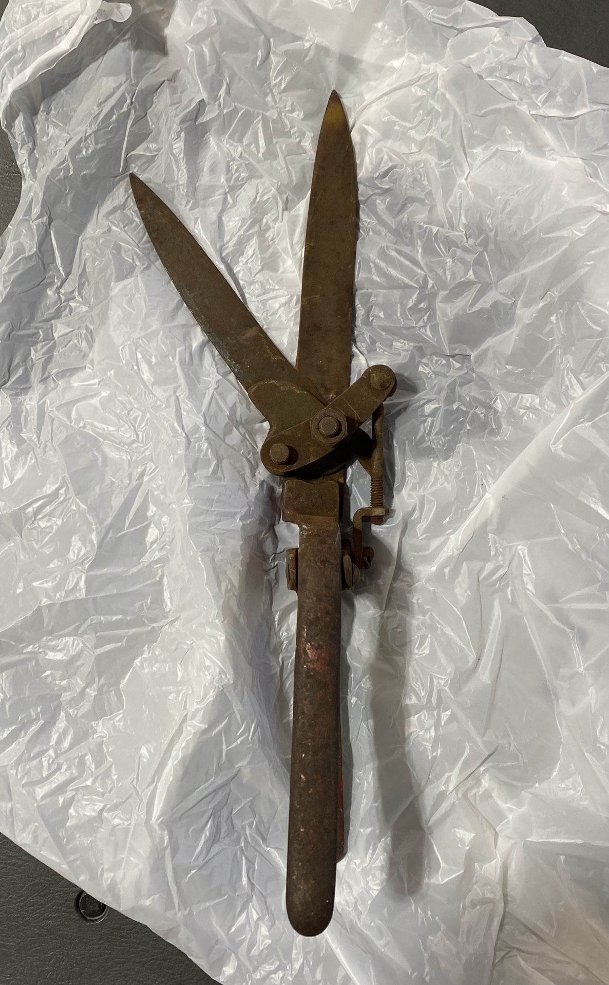 ANTIQUE/VINTAGE GRASS & GARDEN 13” SHEARS-working ingenious mechanics