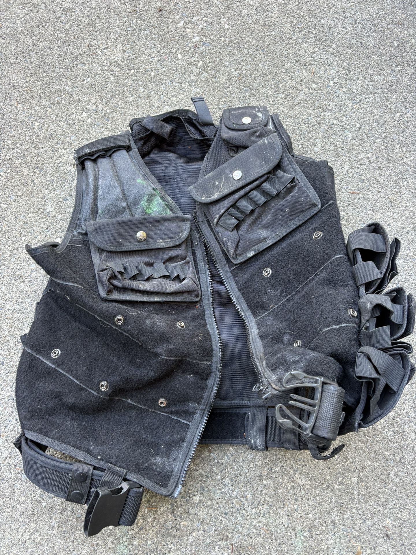 Older paintball vest with pouches for paintball tubes and a co2 canister. Used very few time just been sitting a while waiting for a good home.
