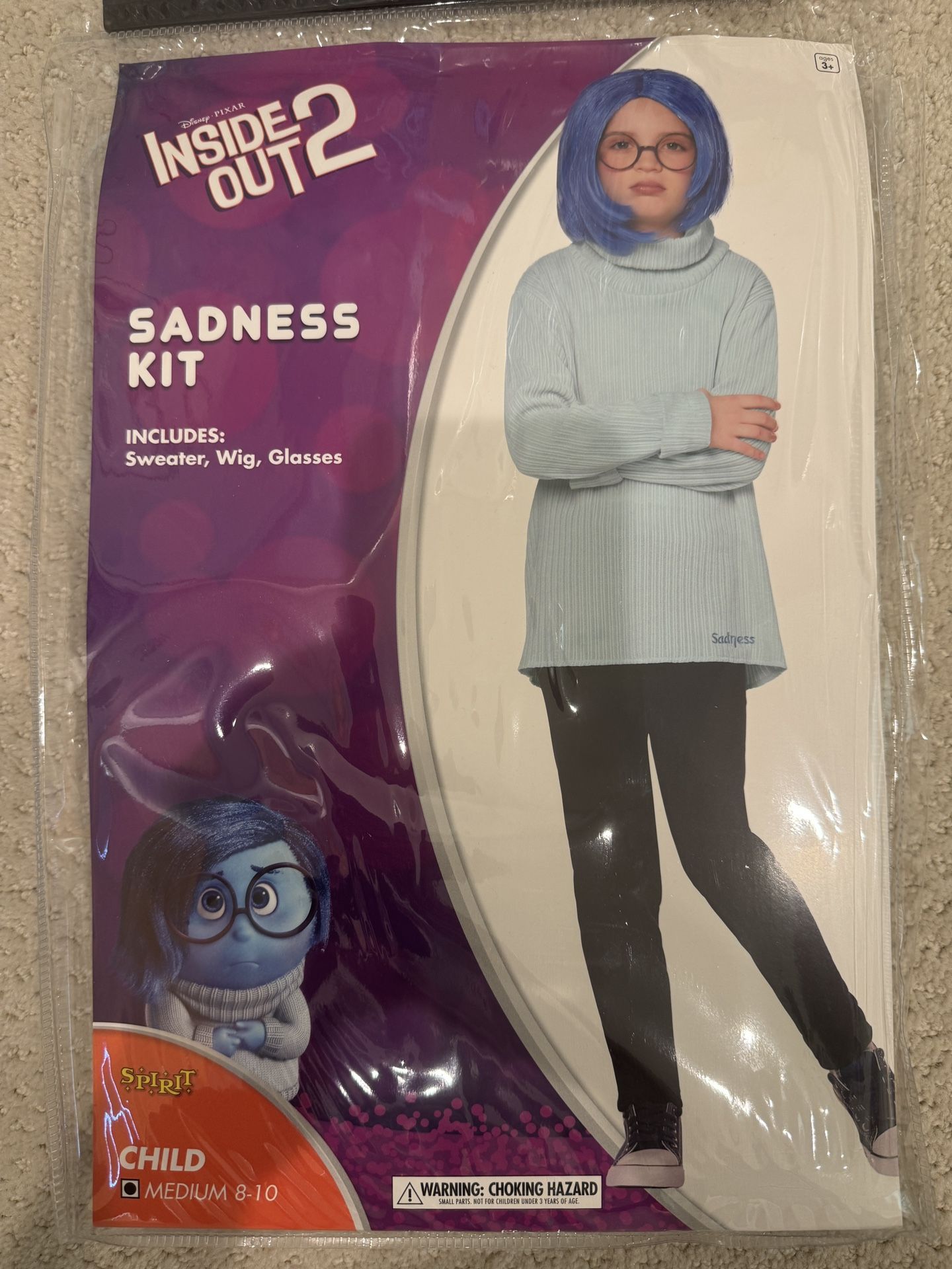 Sadness costume kit, Inside out 2 movie. Size child: Medium 8-10 Retail price $44.99
