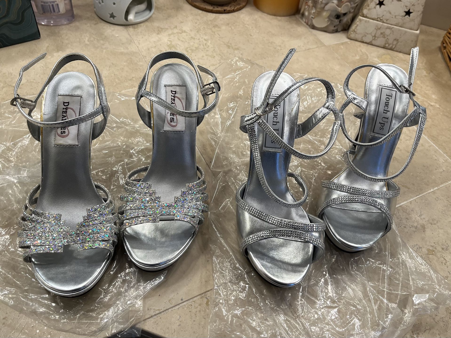 Brand new. Pair on left (more sparkly on front) are size 5.5 other is size 6. $40 each or both for $75 Cash only/pick up only