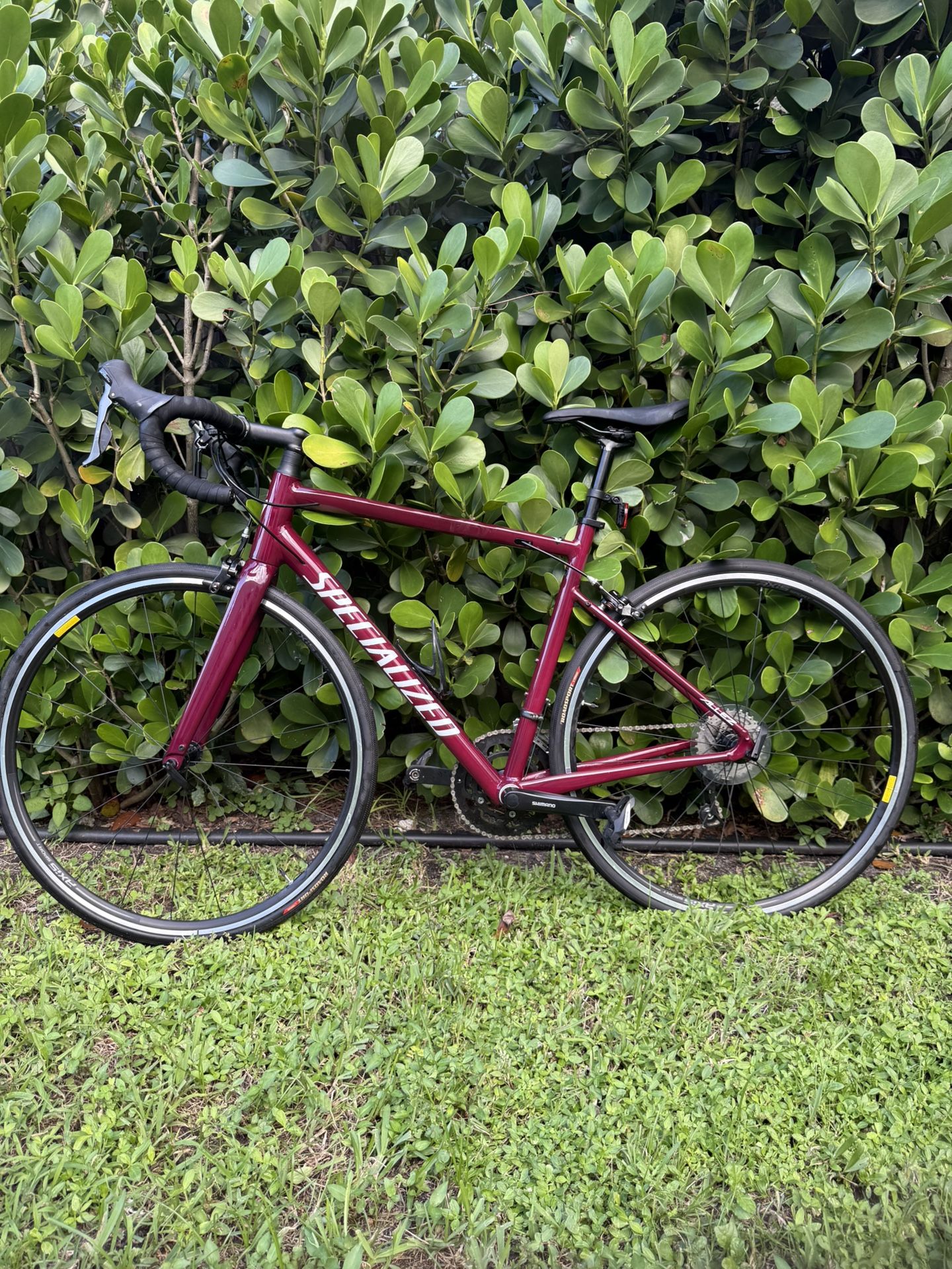 VIDEO AVAILABLE! $850 OBO! Lightweight, fast, and smooth! Selling my 2021 Specialized Allez (54cm) in Gloss Raspberry / Metallic White Silver. It’s in great condition and ready to ride — perfect for fitness, commuting, or weekend rides. Aluminum frame with carbon fork (light & comfortable) • Shimano Claris 2x8 drivetrain – reliable shifting • Shimano SPD-SL clip-in pedals included • Quick-release 700c wheels • Alloy dual-pivot brakes • Serial: WSBC00(contact info removed)R (for buyer confidence) • Made in Taiwan, manufactured May 2021 ***Lightly used. One scratch on steering wheel where I fell from one side*** Serious buyers only please. Message me if you’d like to see it in person or want more pictures.