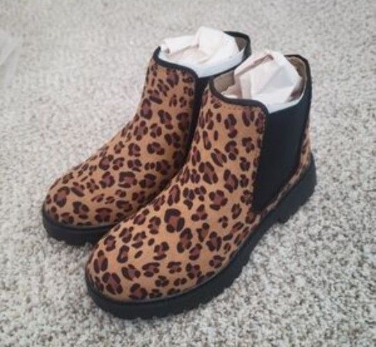 New Girls ankle boots size 2 Youth girls animal print boots