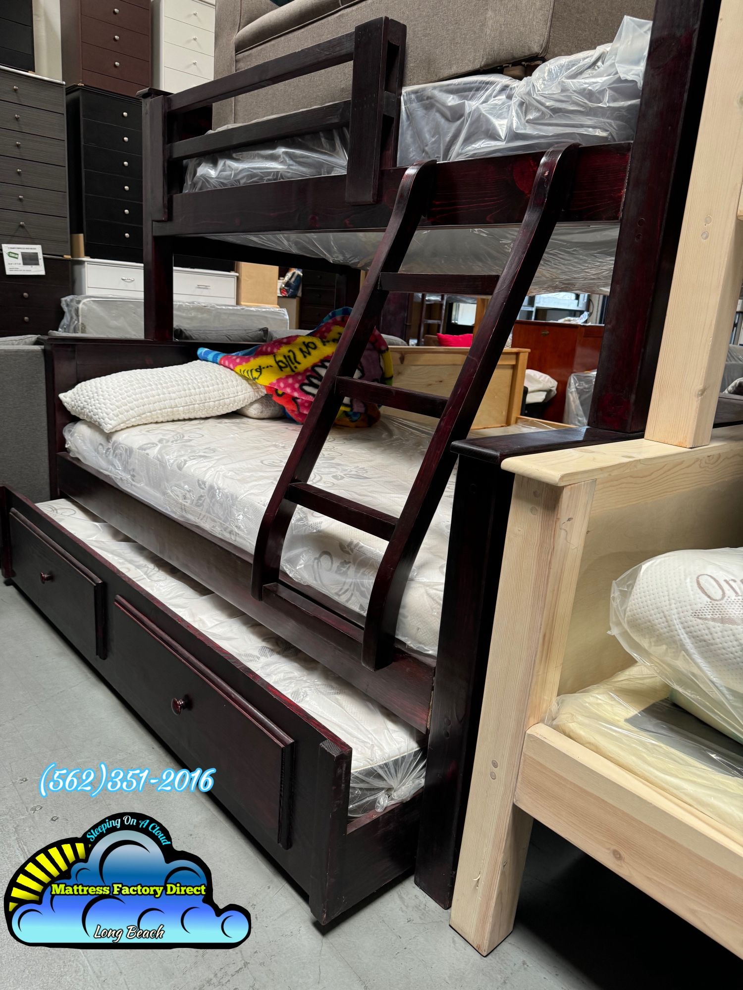 Triple Bunk Bed Cherry With Trundle New Cama Colchones