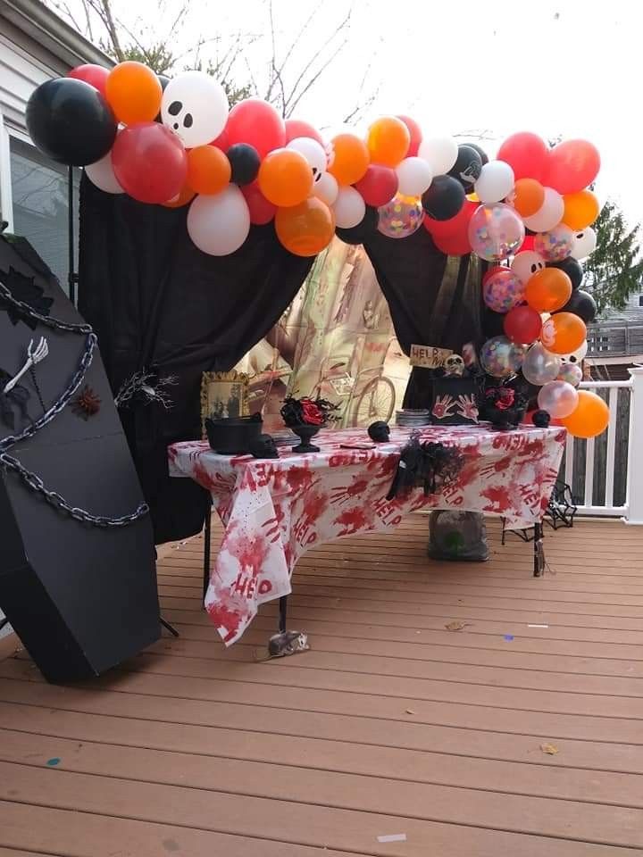 I do backdrops with balloon Garland's for any occasion birthday baby showers anniversaries weddings etc **Halloween set up props for table and balloon Garland backdrop and coffins and 3D number or word BOO included in price $375 I have packages deals that start at 175 and up I have backdrops of characters of sesame Street Minnie mouse Mickey mouse fortnite the crazy gummy Bear LOL surprise dolls Disney Bambi and many many more just inquire