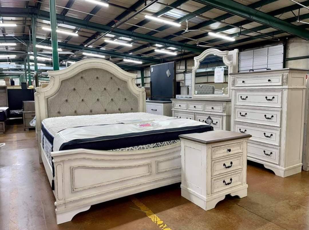 Realyn Chipped White Panel Bedroom Set Queen or King Bed Dresser Nightstand and Mirror WİTH İNTEREST FREE PAYMENT OPTİONS