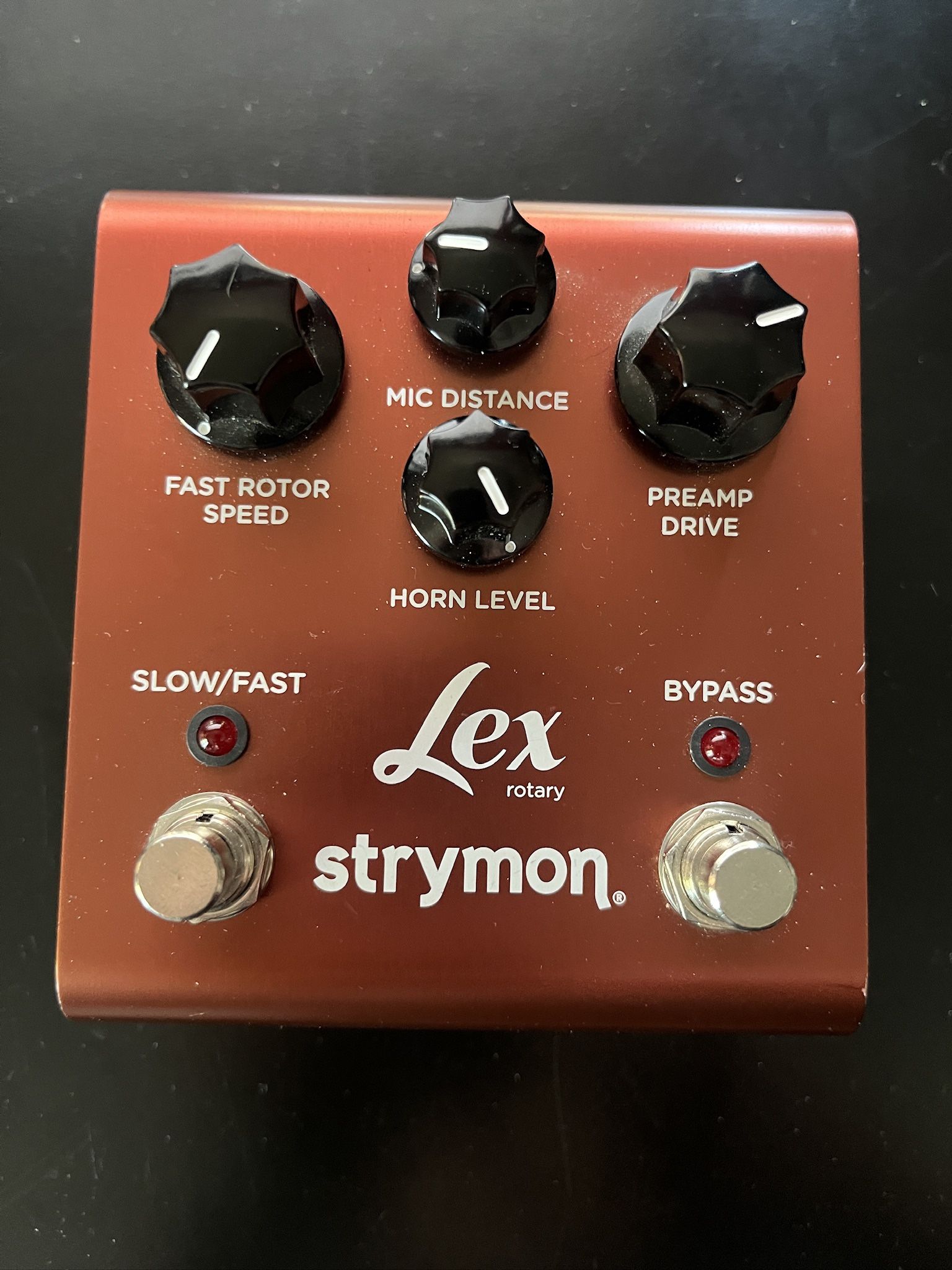 The Strymon Lex is a high-quality guitar pedal that realistically simulates vintage rotary speaker systems (like Leslie cabinets) with deep control over speed, acceleration, mic placement, and built-in tube-style preamp drive, offering subtle swirl to intense modulation for guitar, keyboards, and synths.