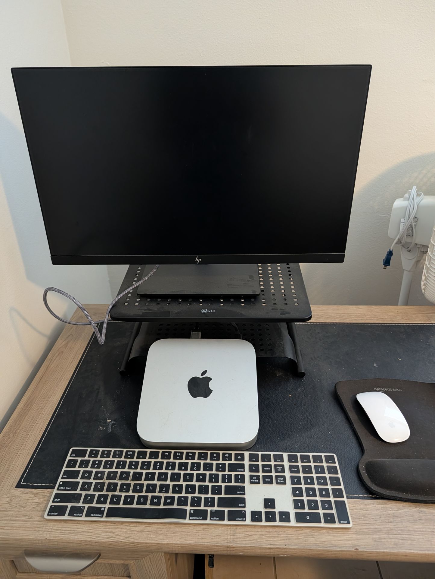 M1 Mac Mini computer with magic mouse/ keyboard plus monitor and all necessary cables. Monitor stand included as well.