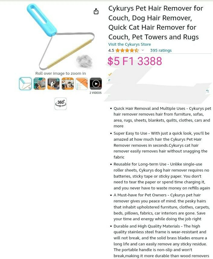 Cykurys Pet Hair Remover for Couch, Dog Hair Remover, Quick Cat Hair Remover for Couch, Pet Towers and Rugs