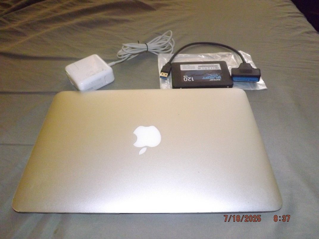 Extremely Rare Find Dual Boot 11" MacBook Air. i7 2.2 GHz Base 3.3GHz Max. 8GB Ram 20GB Ram Windows. 512GB M2 SSD MacOS + 128GB Win 11 Pro 25H2 Latest 10/2025 + Office PRo 2021. MacOS Sequoia 15.7.3. Window's 11 activated Office Pro 2021 activated. Run Windows from External SSD Comes with Power Supply SATA to USB Cable