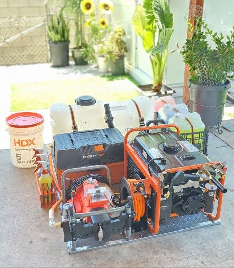 Full kit Detail skid turn On with remote control,Carwash equipment complete set up! Everything is Bolted to the skid easy to slide to any medium car,truck,suv! Ready to start! includes ■low profile water tank 35 gl. Free gravity base with solid straps easy quick conect with flexila hose,spotless water filter! ■Electric pressure washer turn on with remote Comercial super strong,steel Turbo nozzle! All the tips super powerfull with 50dt hose! Pro foam cannon! Short wand with steel frame! ■Generator 3500/4000 watts run smooth! Powerfull not too loud! ■Ridgid Pro pack shop wet/Dry Vacuum/extractor! 5gl. Great suction easy to do interiors detailing clean seats/carpet! ■Compressor 3gl. With 50ft hose all the attachments! Reel. ■Detailing bucket,brushes,spray bottle holder! Etc. ●total of 15gl of liquids everything in the photos for $2200 ready to use! Is a Great pro set up! Like new serious ppl only! Can try it everything before! Equipo completo de Carwash! Todo como nuevo listo para empesar ya!