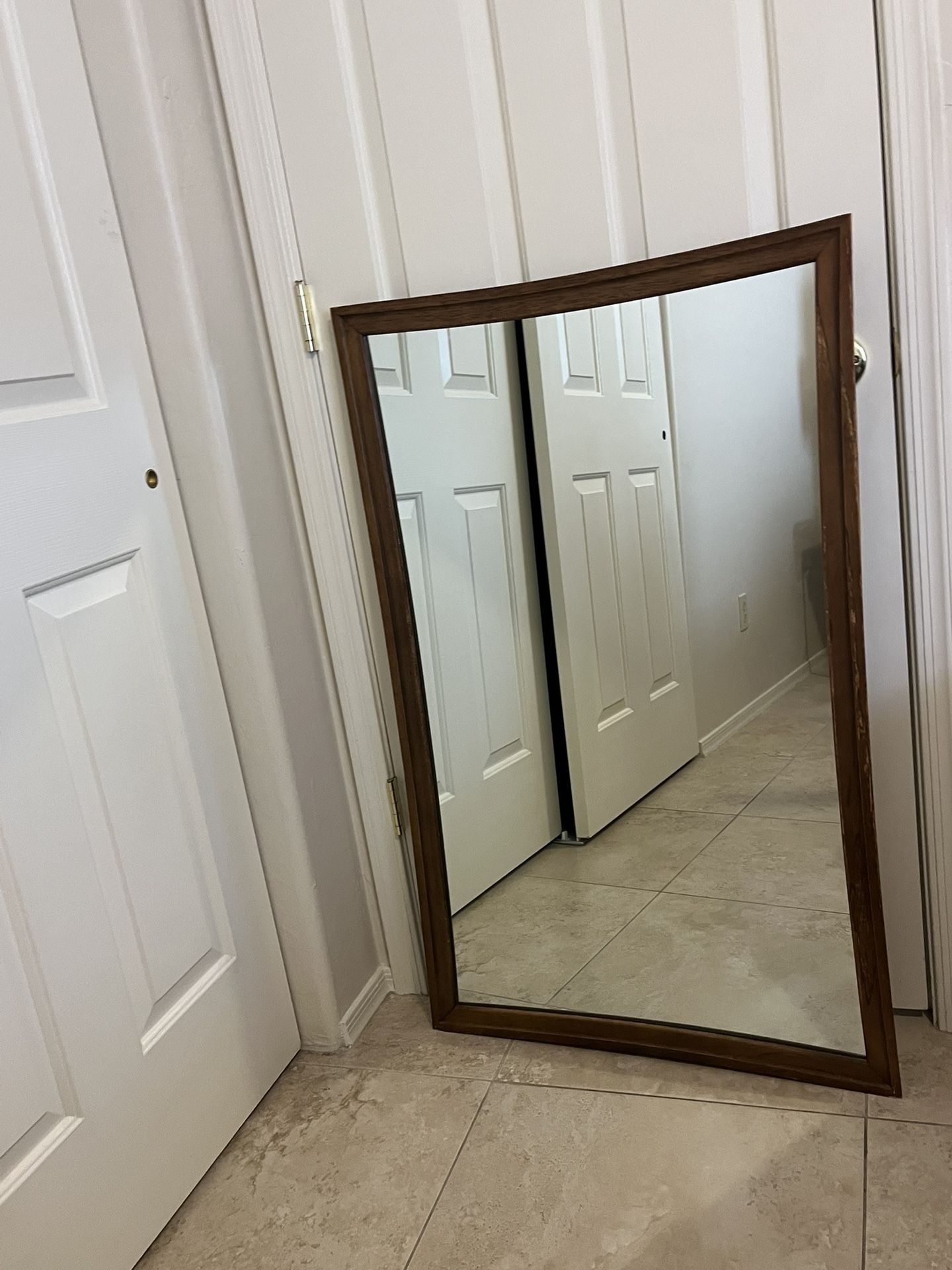 Located Oro Valley 26.5 x 43.5” h x 1” d 1960’s Mid-Century Modern walnut framed wall mirror. A sought-after collection the Broyhill "Sculptra" line, which was popular in the 1960s. The frame features a warm walnut finish and classic rounded or sculpted edges, characteristic of the era's design.