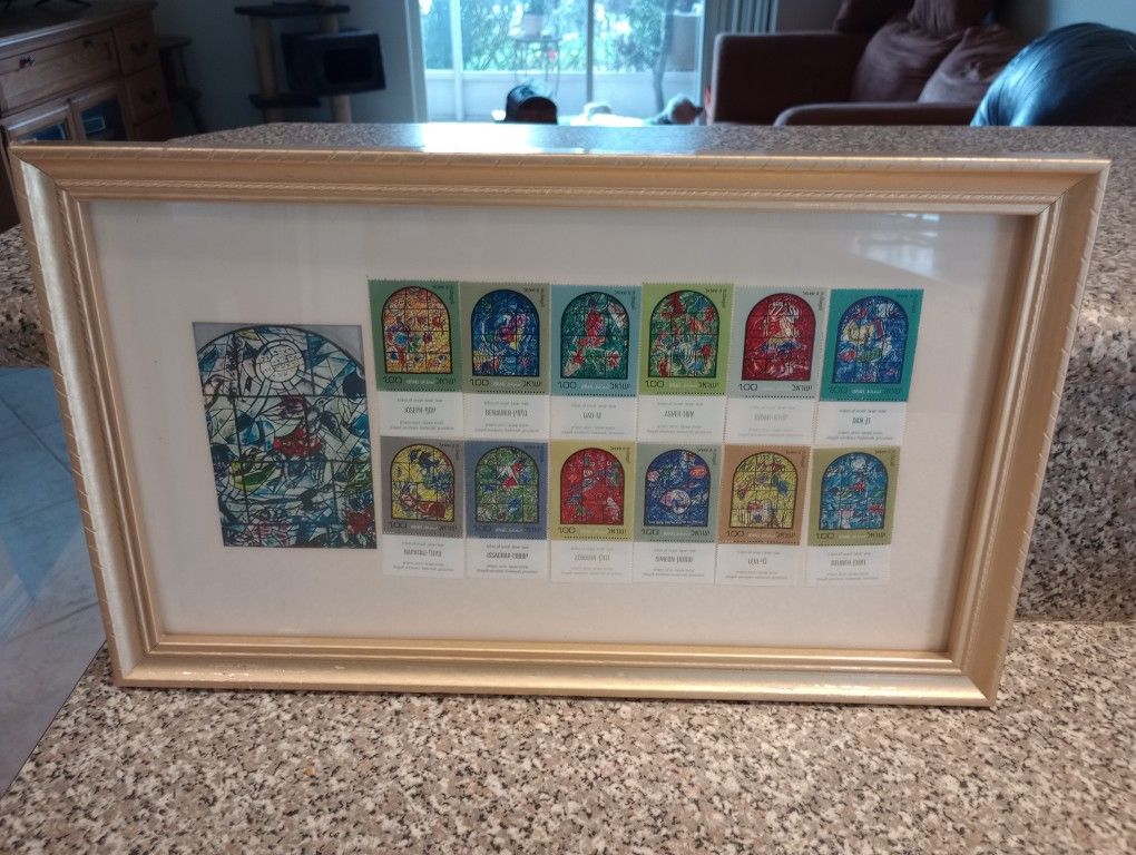 Marc Chagall Tribes Of Israel Art Window Stamps Jerusalem Framed Hebrew Jewish Judaica