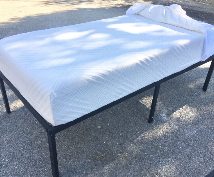 Used twin bed with memory foam mattress and metal platform bed frame like new condition located in Prunedale/N.Salinas $150