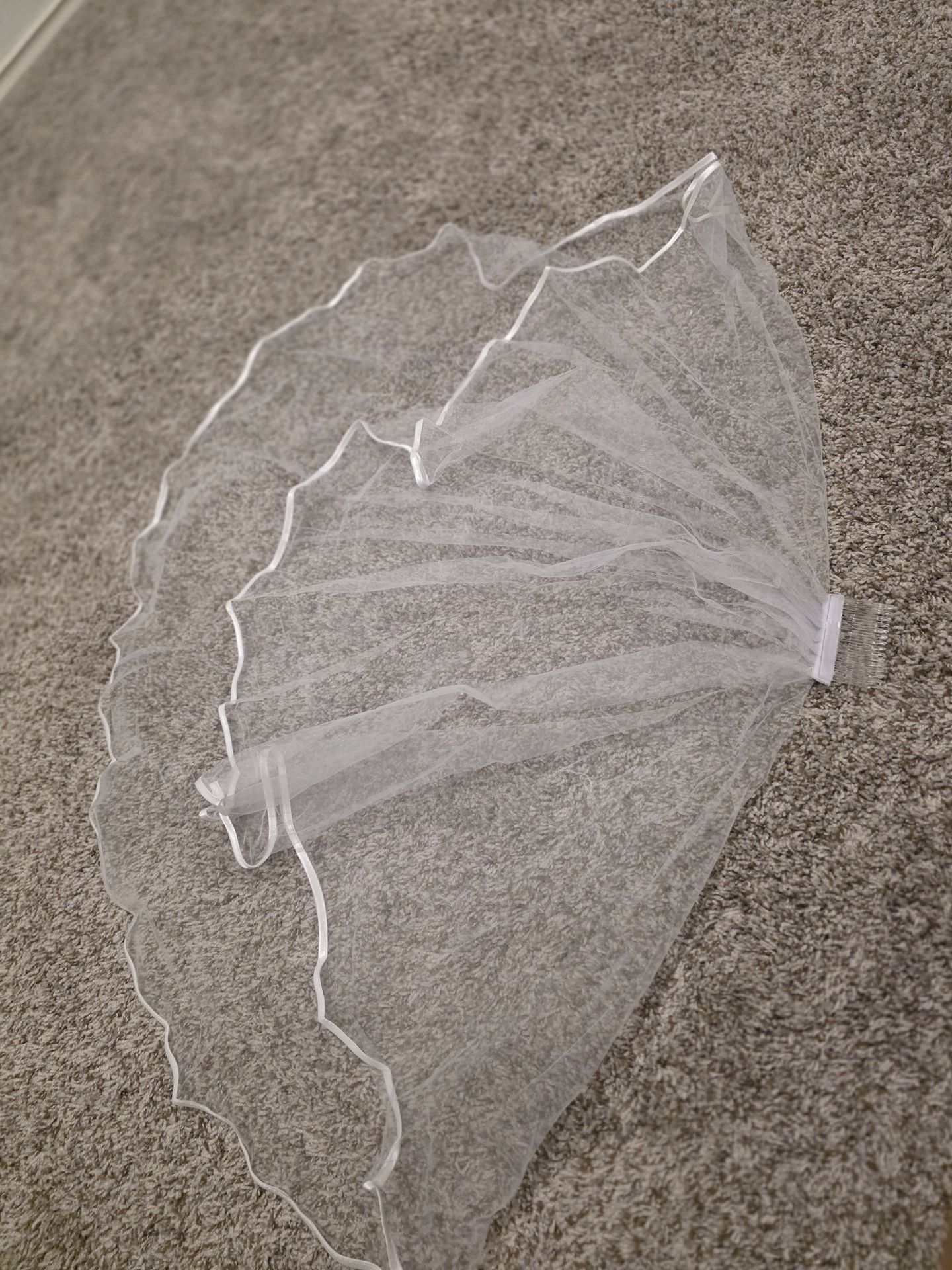 Short wedding bridal veil with comb Fingertip length Two tier design White