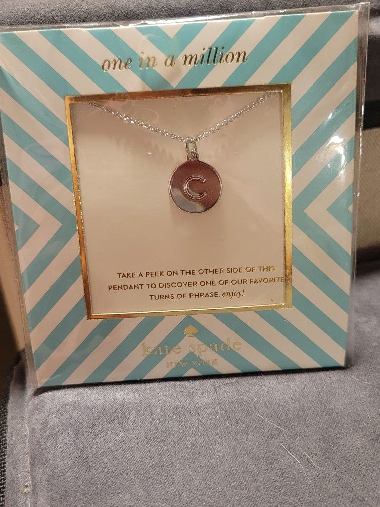 Silver Kate Spade "C" Monogram "one in a million" pendant necklace new in original package
