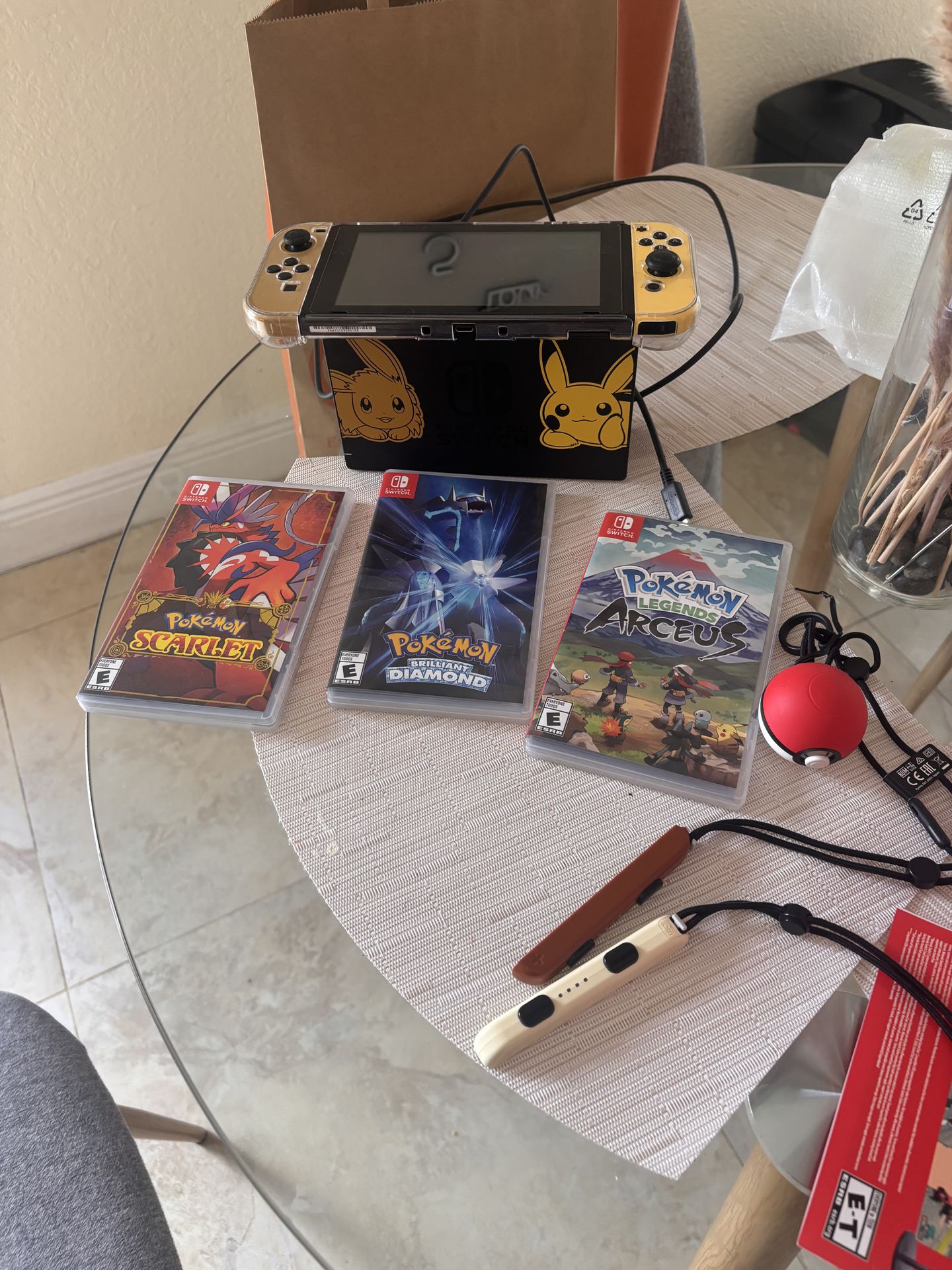 Entire set of Pokémon Go! Switch console . In great shape works like the first day I bought it . Also includes a 200gb micro SD for storing games ! Games included: Pokémon Scarlet Pokémon Brilliant Diamond Pokémon Arceus West Kendall area meet up at a public place