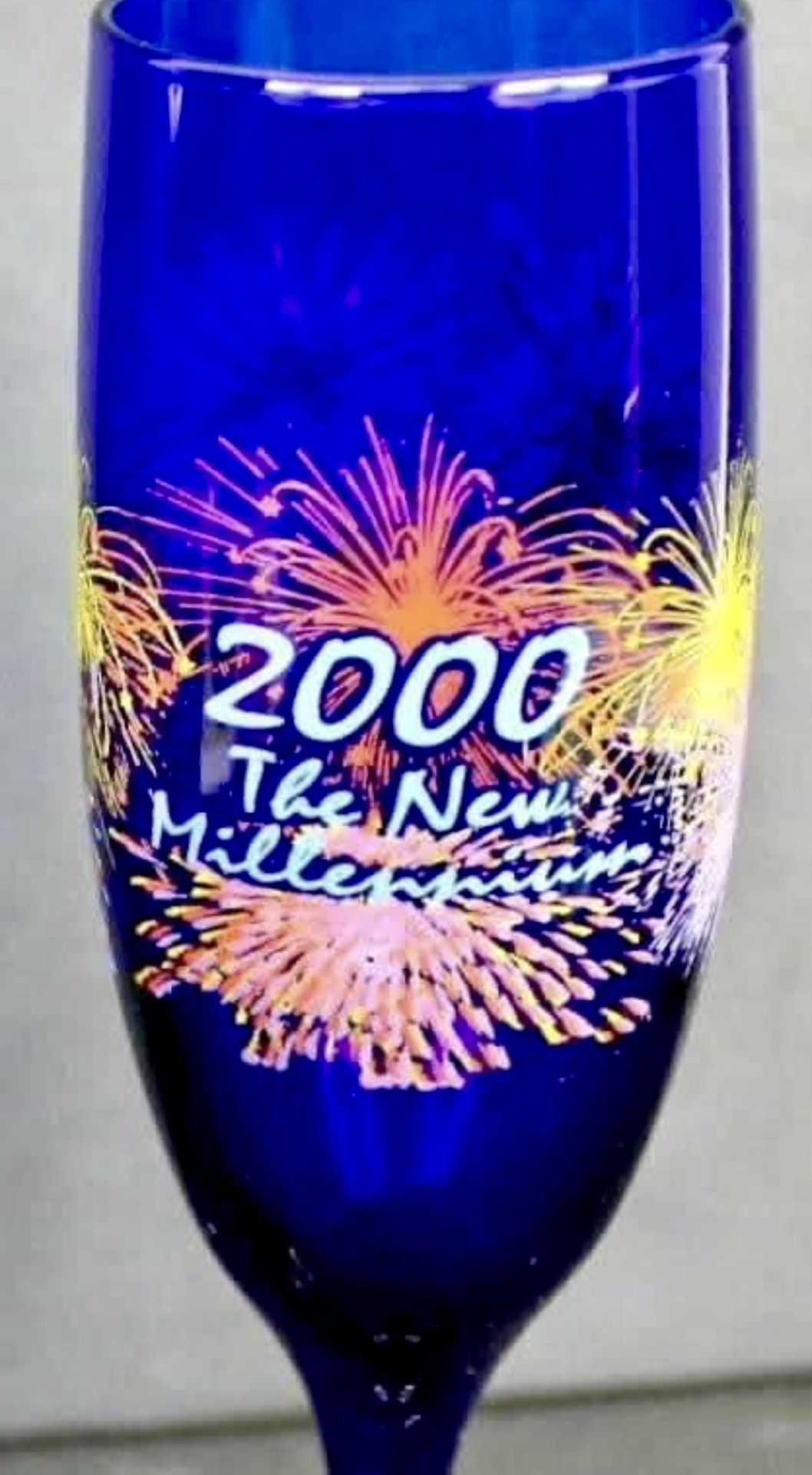 2 Vintage Libbey Cobalt Blue 2000 Millennium Y2K Champagne Flutes
