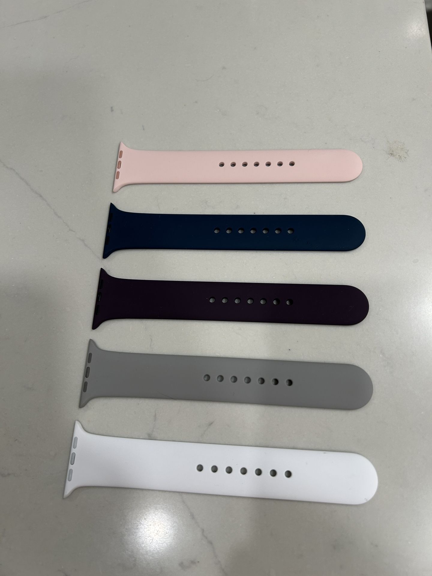 *Silicone Apple Watch bands. *All are 44/45MM (M/L) *I have boxes for all but the gray and white. *Selling as a whole, not individual. *None have ever been warn.