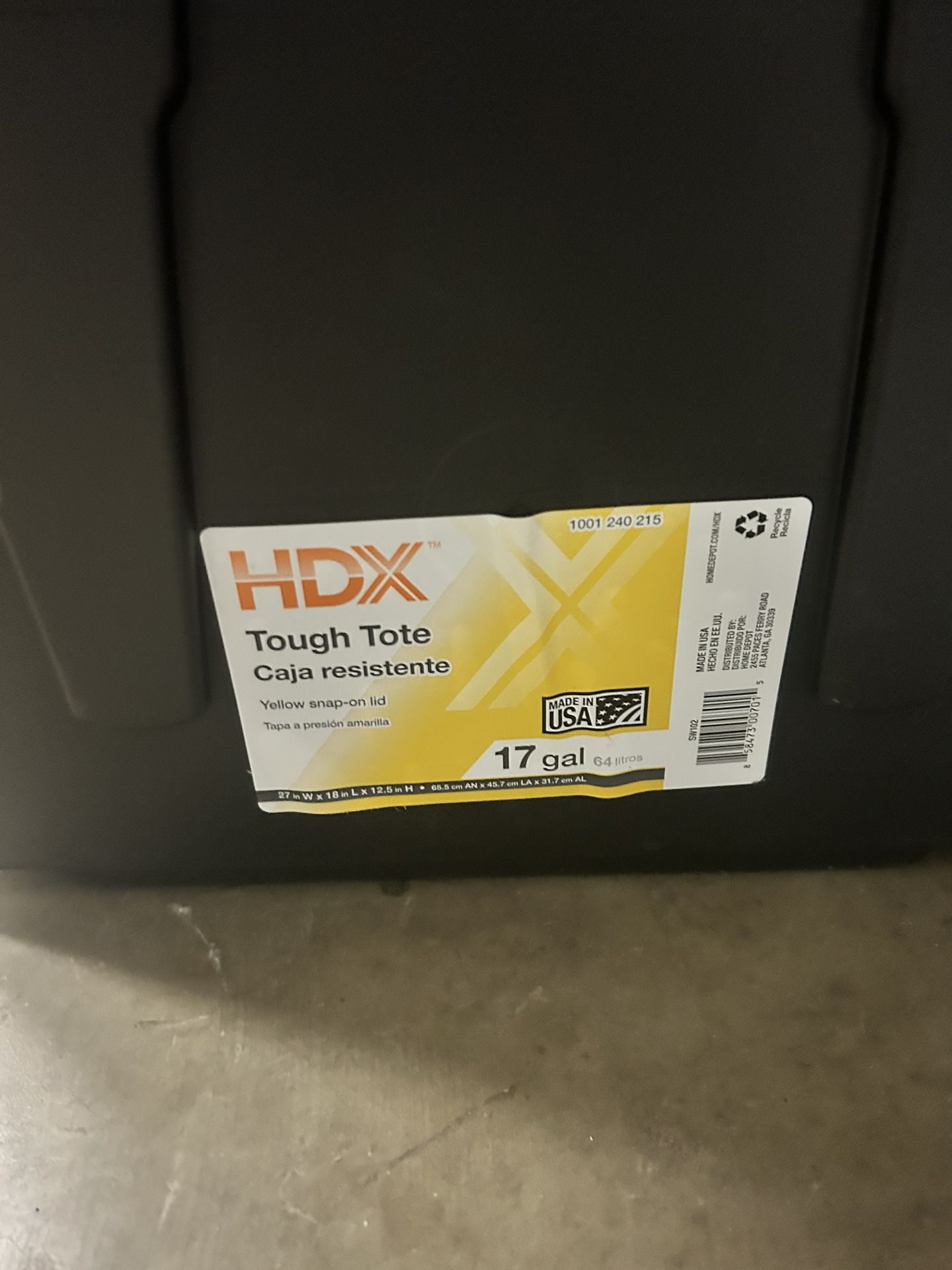 Hdx from Home Depot black and yellow storage tote. 17 gallon it’s a little smaller and easier to carry they are brand new just no need for them I have 10 of them with lids