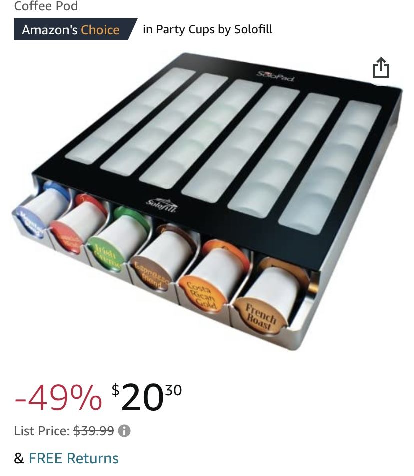 Brand Solofill Material Glass Color Black Occasion Everyday Product Care Instructions Machine Wash, Hand Wash Only About this item Es' Glide System Automatically Dispenses 42 K-cups Study Glass Top Easy To Clean Can Be Hung On Pantry Door Es' Glide System^Automatically Dispenses 42 Single serve cups^Study Glass Top^Easy To Clean^Can Be Hung On Pantry Door