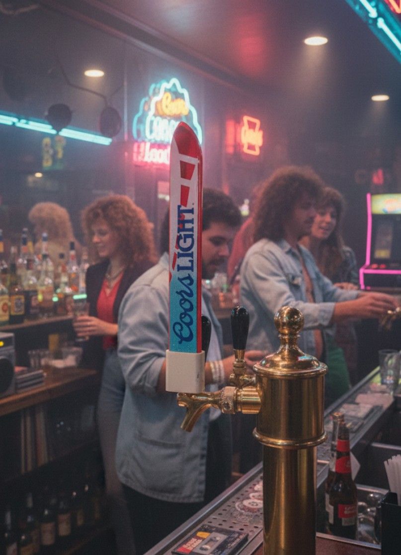 Hit the slopes of nostalgia with this rare vintage 1980s Coors Light beer tap handle! This unique piece is a must-have for any collector or anyone looking to add some serious retro flair to their home bar or man cave. Iconic 80s Vibe: Designed as a pair of skis, this tap handle perfectly captures the spirit of the decade with its vibrant neon colors and classic Coors Light branding. A True Collector's Item: Hard to find and highly sought after by breweriana enthusiasts, this is far more than a simple bar accessory—it's a piece of advertising history. Whether attached to your kegerator or displayed on a shelf, its distinctive look guarantees a second glance and a trip down memory lane. A genuine vintage item that brings an authentic touch of the '80s "Made to Chill" era to any setting. 89th avenue and Cactus