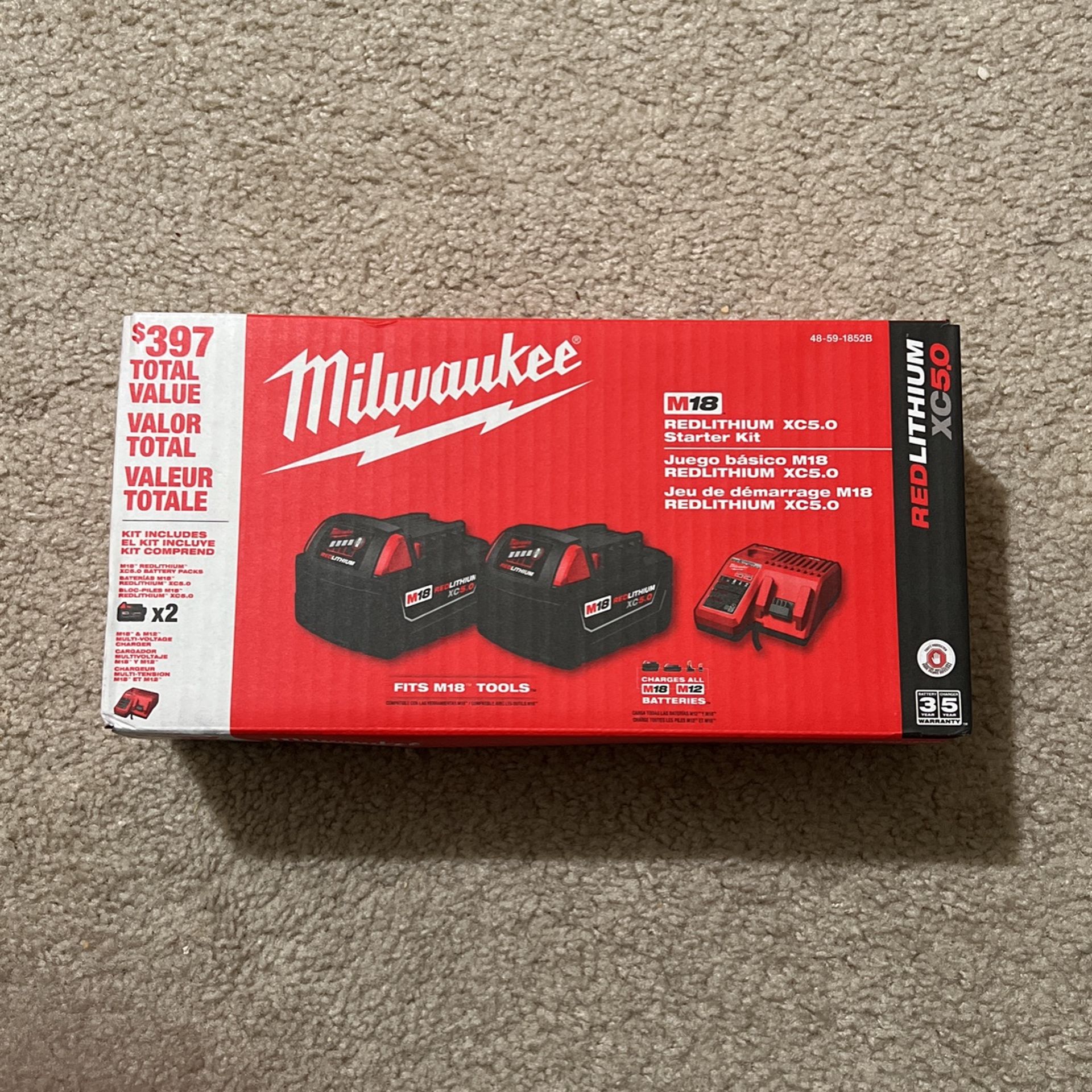 Milwaukee M18 XC 5.0 Battery (X2) & Milwaukee 48-59-1812 M12 M18 Multi-Voltage Charger (X1) For sale and it is under Milwaukee warranty 3 Year battery and 5 Year charger brand new never open