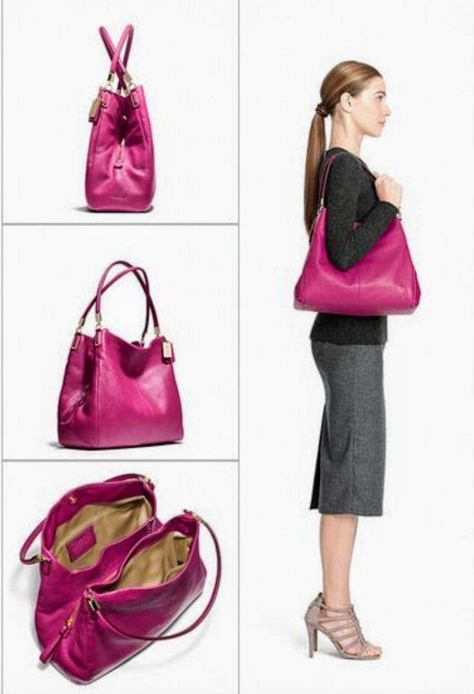 Beautiful, gently used. Coach Madison Phoebe shoulder bag, supple pebbled leather in stunning, cranberry, and gold hardware. The satin-lined interior includes so much storage space. A zippered pocket with COACH creed and serial number. F26224 Color: Cranberry (fuchsia) Material: Pebbled Leather Hardware: Light-gold toned Dimensions (approx): 12.5" L x 11.5" x 5.75" Interior: Beige satin fabric in excellent condition. Center Section with zip closure Interior Pockets: 1 Zip, & 2 multifunction slip Closures: Zip Center & Magnetic Handle Drop: 11” *light wear on bottom corners and one of the shoulder straps. please view all photos as they are part of the description. from a Non-smoking home.