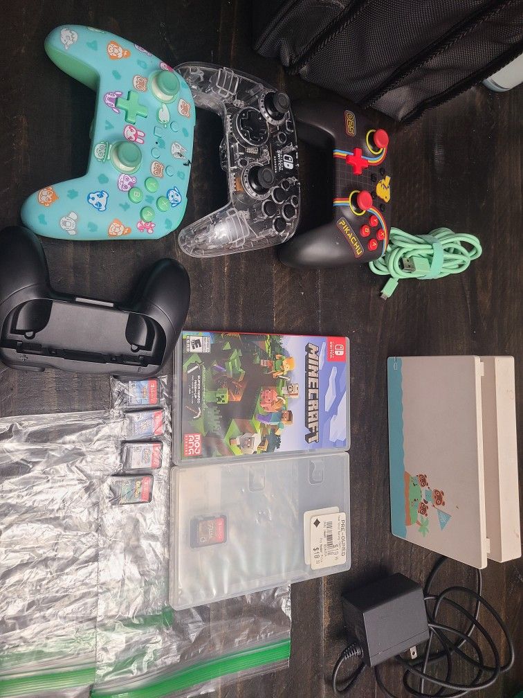 Nintendo switch 6 games and 3 corded controllers amd a switch dock with power cable. 2 controllers are missing USB cord but can be purchased at wal mart for about $7 4 games are cartridge only All works 175 package deal OBO