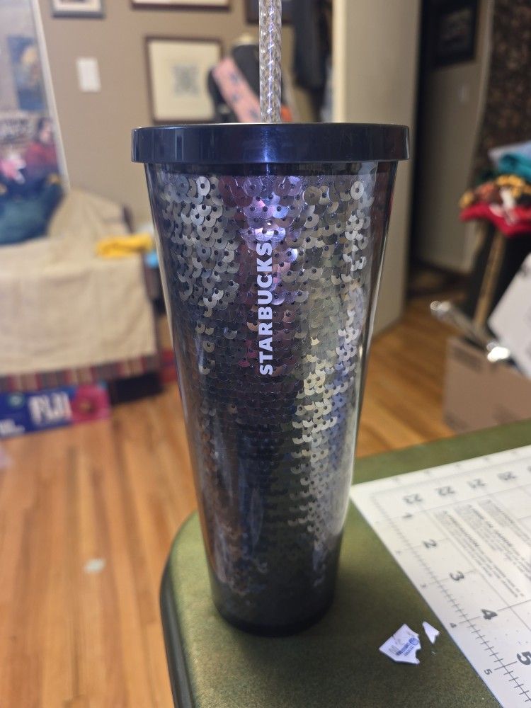 Starbucks Black Sequin Venti 24oz Travel Tumbler
