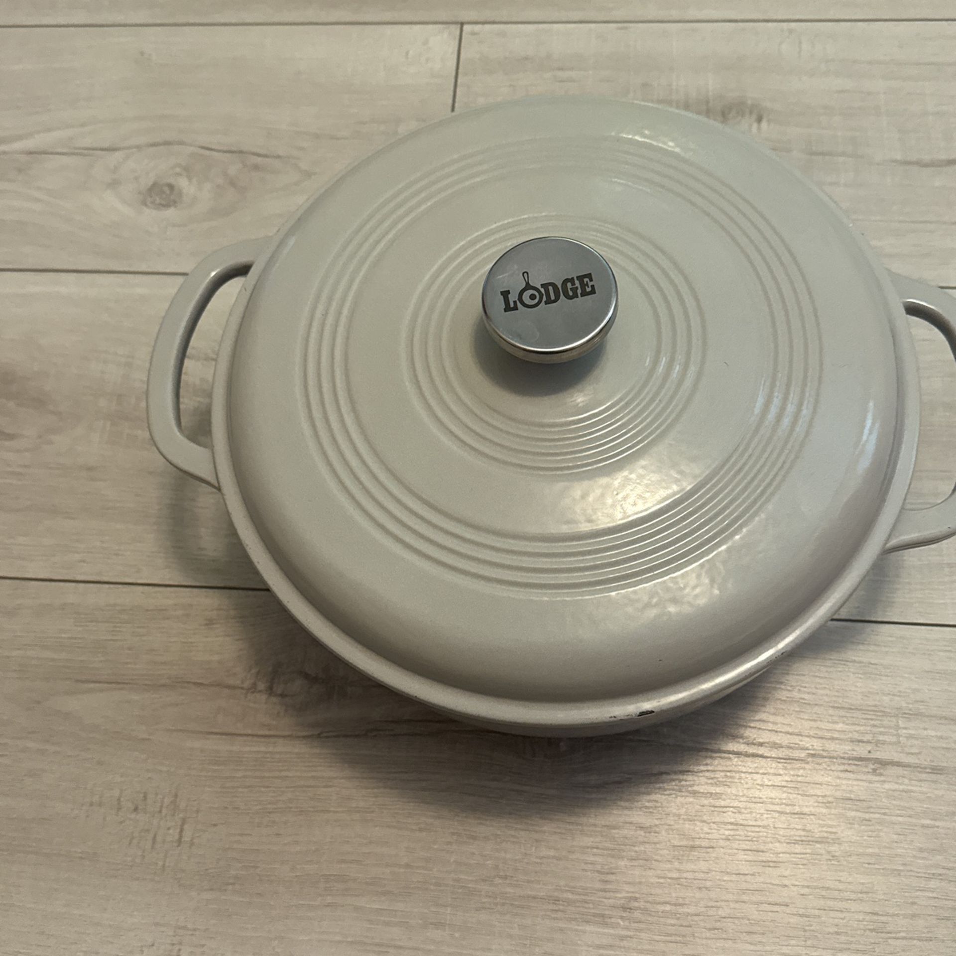 Oyster Grey 7qt Dutch Oven. Used Once. Has two small chips (see photos). Works great. Retail cost is $100.