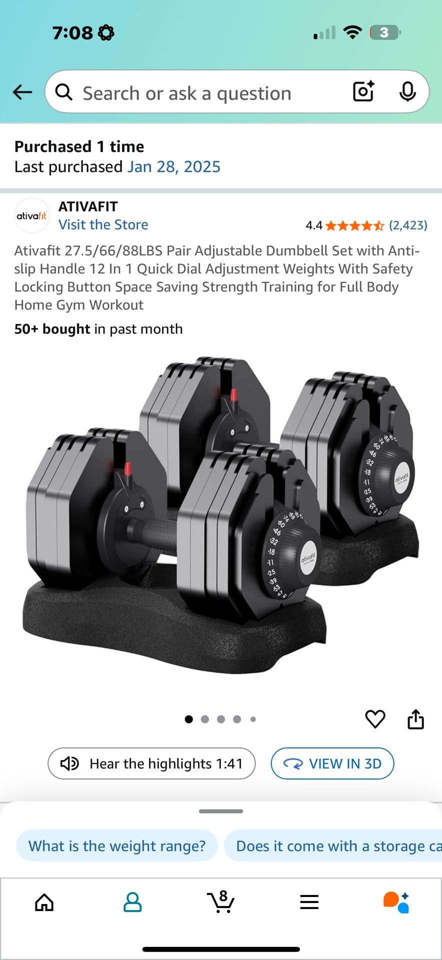 I have these dumbbells. They're adjustable up to 90 pounds.