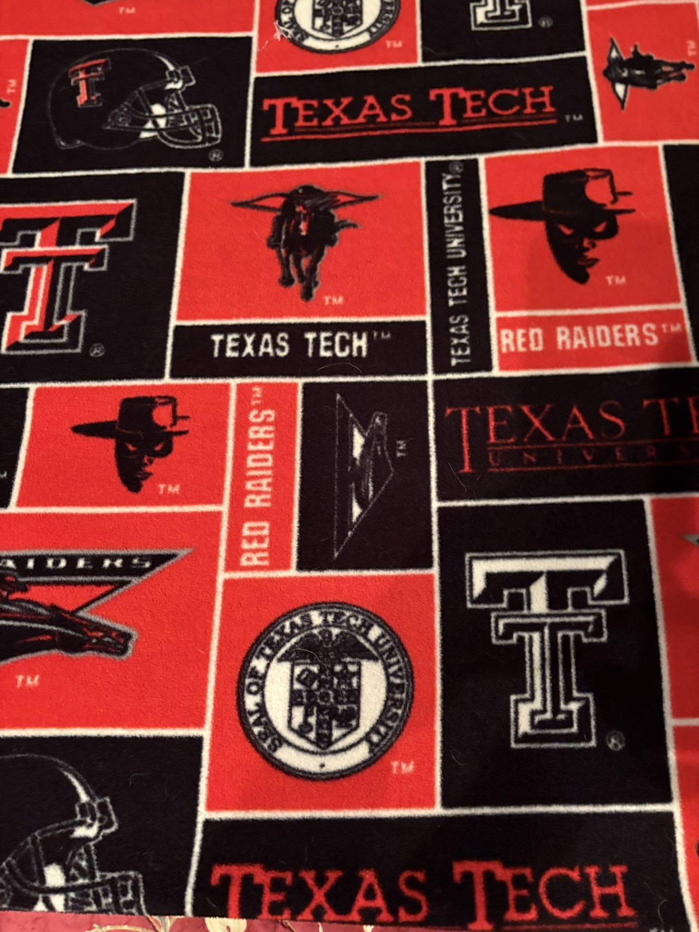 Flannel piece of fabric that is 57 inches long and 56 inches wide. Texas Tech design