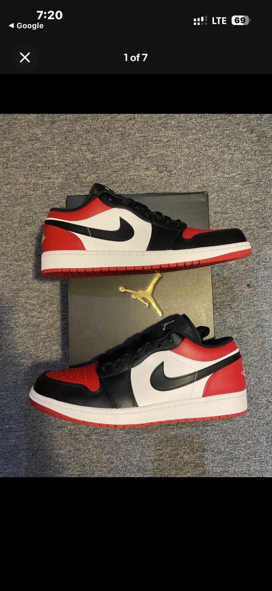 Nike Air Jordan 1 Low Bred Toe (2021) - Size 7y- Brand New -