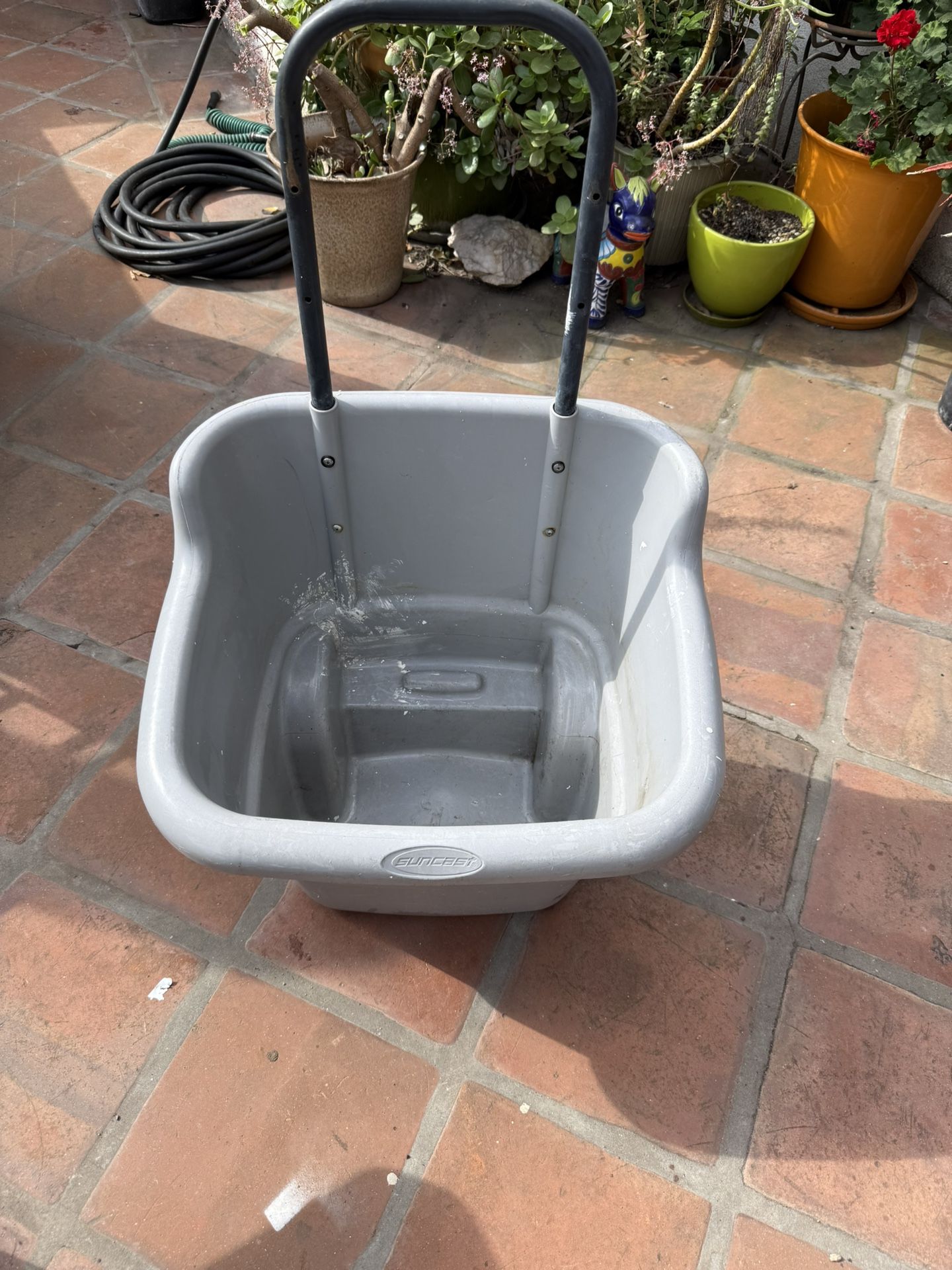 Suncast 2 cu ft lawn & garden cart. Light weight, durable resin construction. Ideal for transporting soil & mulch. Cash only!