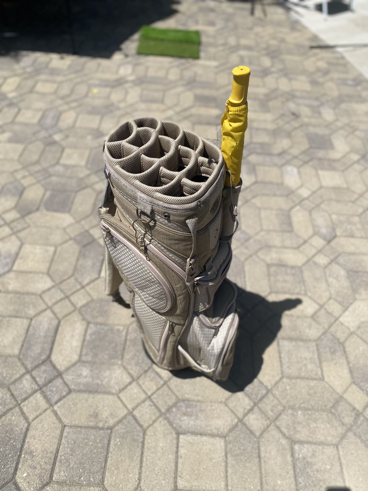 Bag is in good condition, includes yellow golf umbrella. Located in Oak View!
