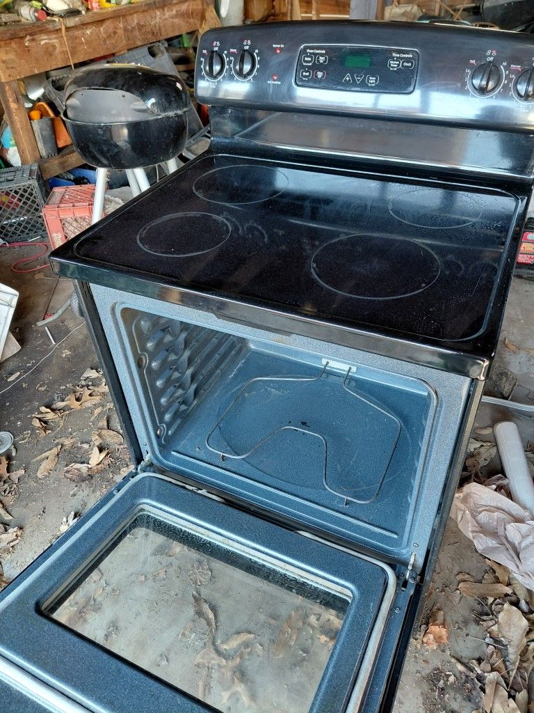 New black glass top stove extra large window oven window high-end have all the parts 100% works perfect with a backup warranty no sales tax can deliver and set it up only $219 only one in stock will make you happy God bless