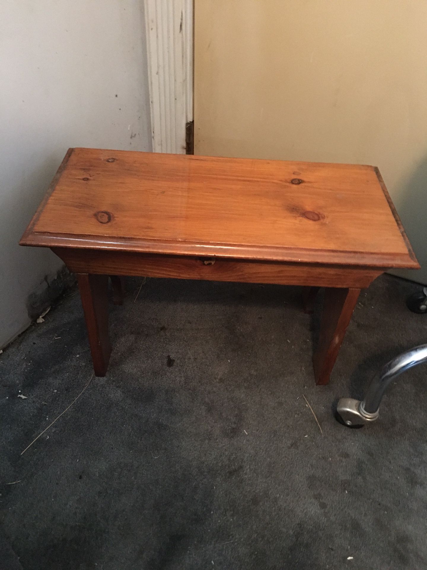 A hand made wooden foot stool like new 22” inches long by 11” inch wide by 13” inch tall $30.00