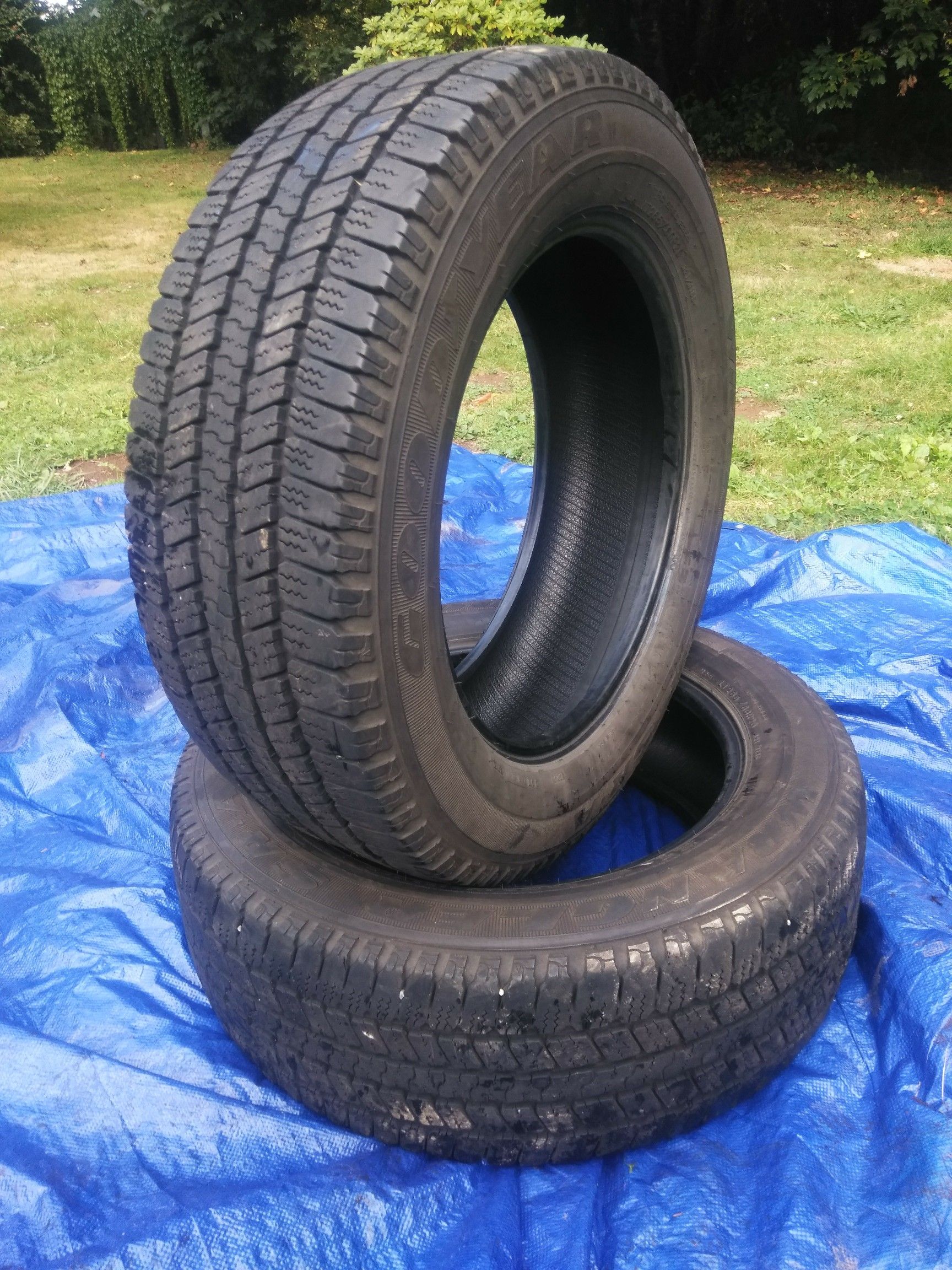 (contact info removed) Set of 2 All hold air Around 75% tread left 15 days warranty And if you were looking for other size please check my other offers 185-60-14 215-60-16 195-65-15. 215-65-16 195-60-15. 215-60-15 205-55-16. 215-65-15 225-60-16. 215-55-16 235-75-15. 225-70-15 205-65-15. 215-70-16 235-70-16 245-70-16 33x12.50r17 225-70-15 185-80-13 185-65-14 225-45-17 215-45-17
