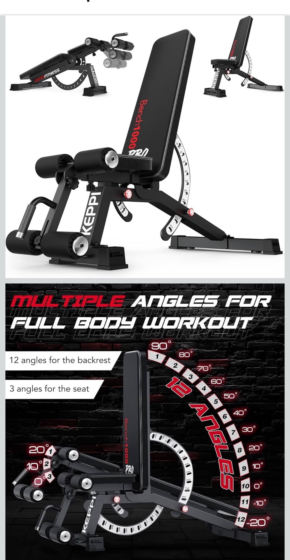 Keppi Banco de pesas de 1200 libras, banco de alta resistencia, 1000 Pro, juego de prensa de banco de entrenamiento ajustable para entrenamiento de fuerza en el gimnasio en casa