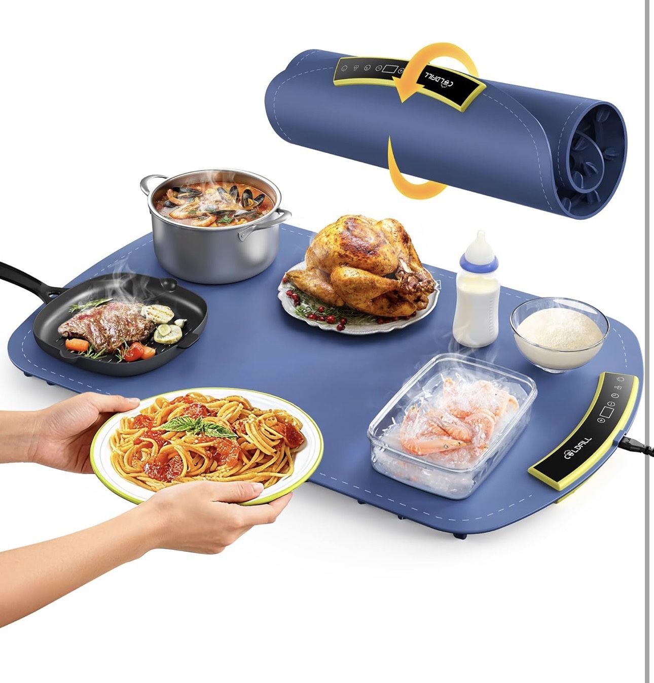 Food Warming Mat, Large Electric Warming Mat for Food & Buffet Party, 8 Temp Levels & 4H Timer, 5s Full-Surface Heating, Waterproof Silicone Chafing Dishes, Roll-Up Design, Easy to Clean