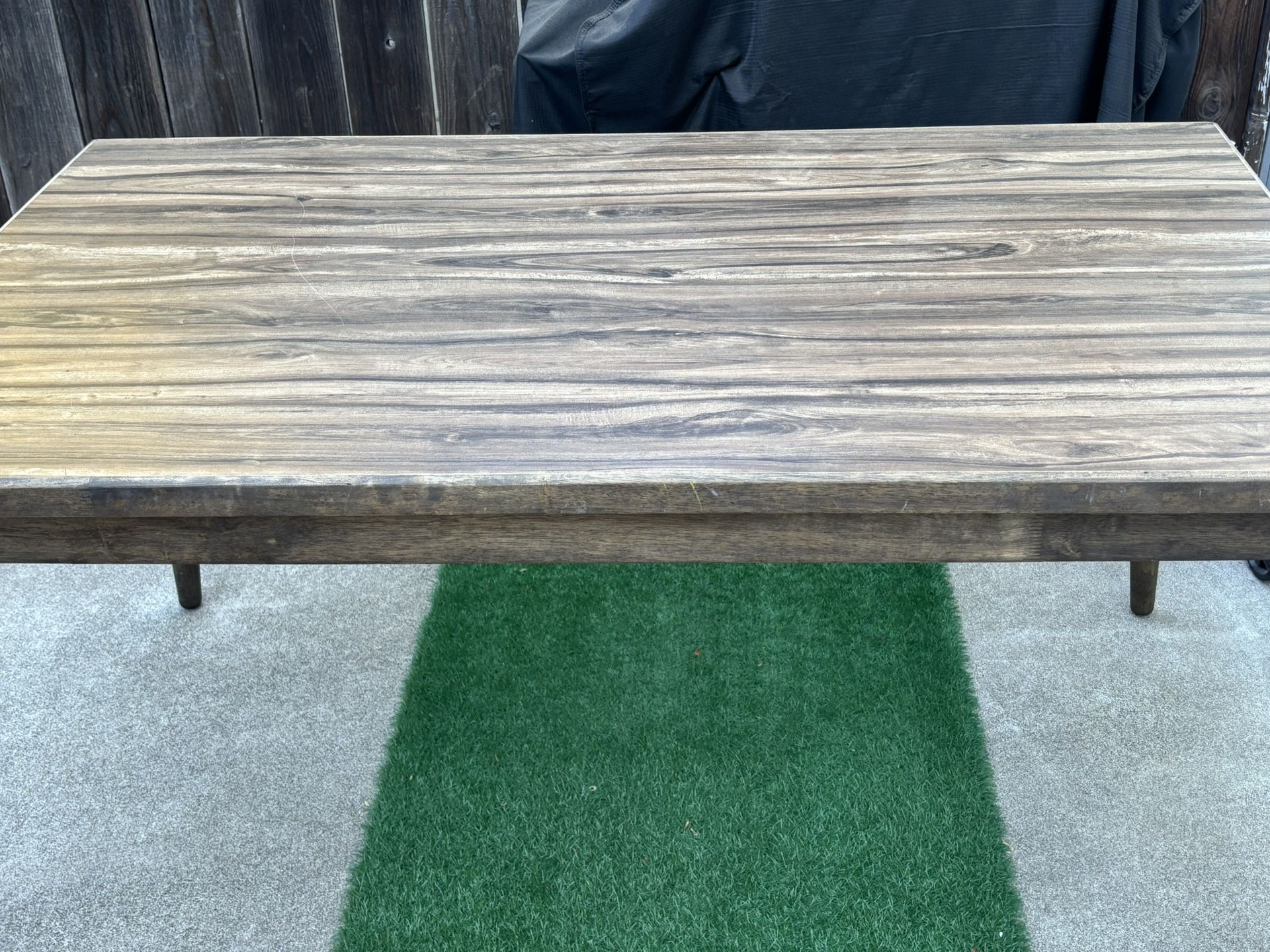 Have a wooden dinning table with 4 chairs The chairs do have to be deep cleaned Table is firm and strong, just have no space for it Bought a bigger dinning table have no use or need for it now