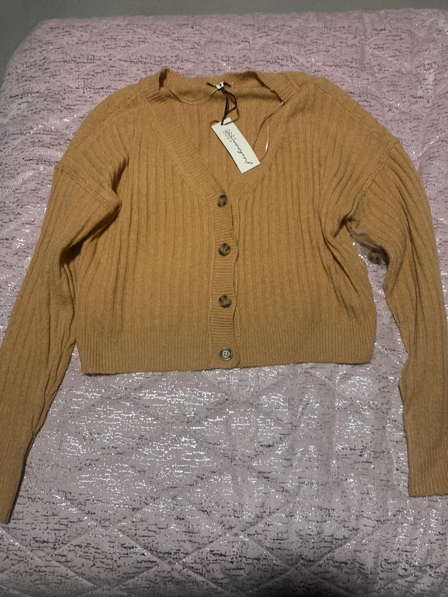 Womens Mustard Yellow Size Medium Cropped Sweater Button Up Cardigan